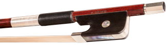 Select Pernambuco Stick. Silver mounted. Silver tip plate. Special 8 Eye Button. Violin model shown.