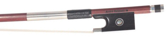 Aged Pernambuco wood; crafted after English bow-making school style, proprietary frog styling, lizard-leather thumb-grip, goldfish slide, solid silver or silver tinsel winding, bone tip, frog is finished by bowmaker himself. You can find these bows with or without Parisian eye.